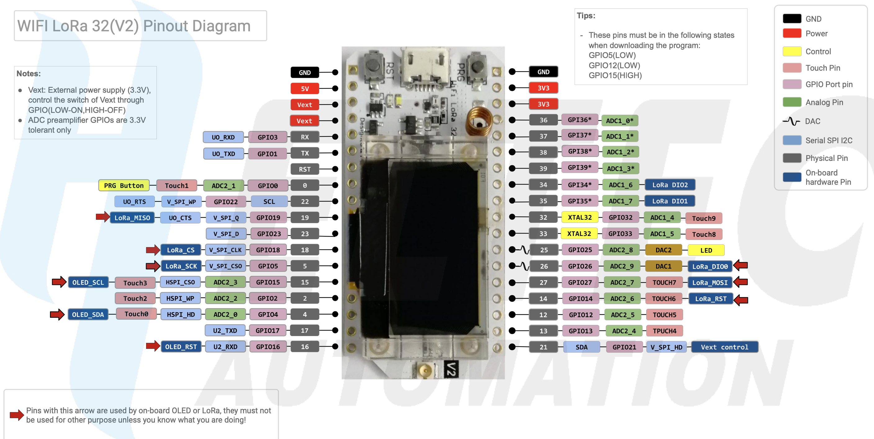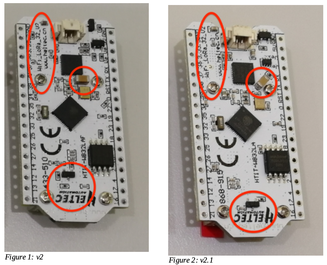 There are two versions of the Heltec (V2). Below is a picture highlighting the visual differences: